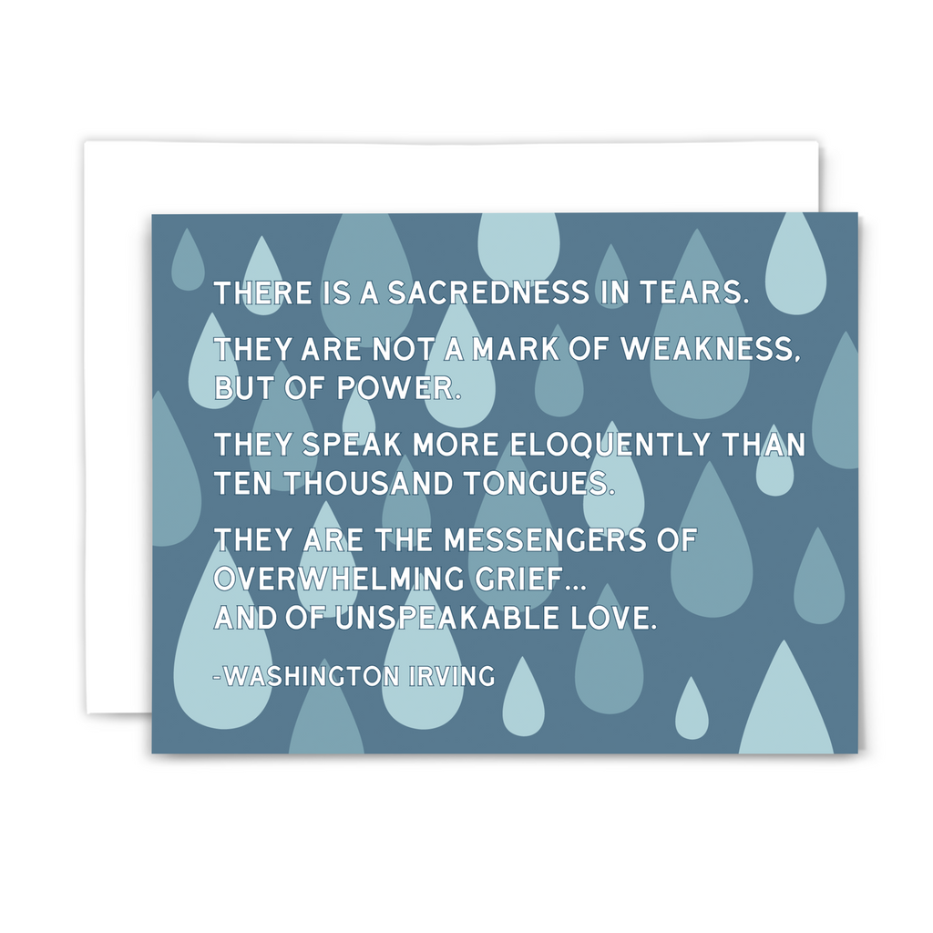"There is a sacredness in tears. They are not a mark of weakness, but of power. They speak more eloquently than ten thousand tongues. They are the messengers of overwhelming grief...and of unspeakable love. -Washington Irving"